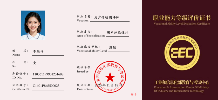 伊飒尔界面设计公司联合工信部教育与考试中心,推出用户体验测评师职业能力培训和等级评价证书,系统培养掌握可用性测试、体验度量等硬核能力的专业人才,助力企业构建体验全链路闭环。