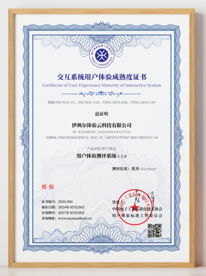 交互系统用户体验成熟度证书